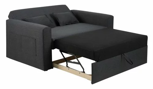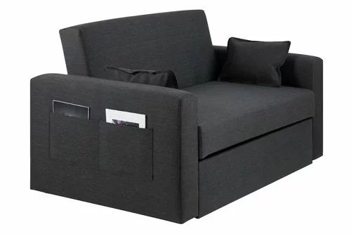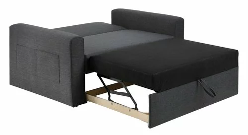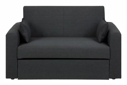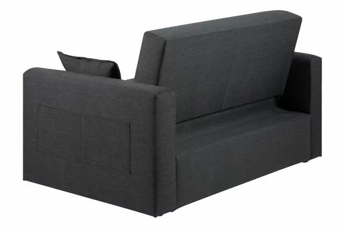2-sits soffa med tygklädsel. Soffan görs enkelt om till en säng. Sitt- och ryggkuddar i skum. Med tidningshållare. Sovyta 111×185 cm. B146 x H85 x D96 cm