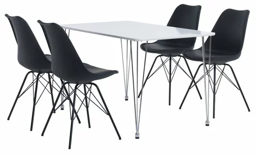 BANNERUP L120 Bord Vit + 4 KLARUP Stol Svart