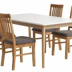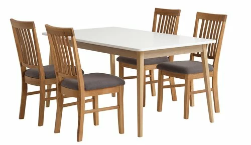 | Material | Topp: Träfiberskiva, Ben: Massiv ek, Ram: Träfiberskiva, Yta: MelaminMelamin är en typ av konstfanér med en slitstark, reptålig yta. Den är gjord av mycket tunna plastskikt som limmas på en spånskiva eller en MDF-skiva. |