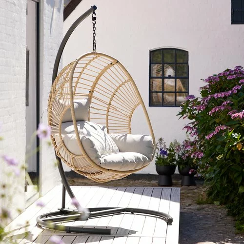 Stål och konstrotting. Inkl. stativ och exklusiva dynor med slitstarkt, strukturvävt överdrag. B118 x H184 x D106 cm