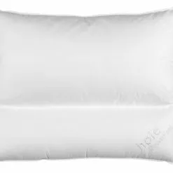 Exklusiv kudde med boxkant, som gör att kudden håller formen och ger ett jämnt stöd. Unik dunliknande fyllning av silikoniserat fiberdun, 800 g. De mjuka, lätta fiberdunen bevarar volymen och är lätta att skaka på plats. Kuddens höjd kan justeras genom att ta bort en del av fyllningen. Kudden har en kanal som ger bra stöd åt nacken. Överdraget i 100% bomullstwill har behandlats med mjukgörande aloe vera. Tvätt 60°C. Inkl. förvaringsväska. 50×60 cm