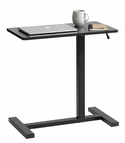 Konstfanér och stål. Sladdlöst höjdjusterbart bord som manövreras med gaslyft. Med hjul. B41 x L70 x H72-106 cm