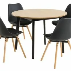 JEGIND Ø105 Bord Ek + 4 KASTRUP Stol Svart