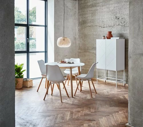 JEGIND Ø105 Bord Vit + 4 KASTRUP Stol Vit/ek
