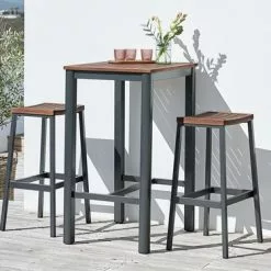 Bord: Aluminium och oljat FSC® hårdträ. B55 x L70 x H103 cm. Pall: Aluminium och oljat FSC® hårdträ.