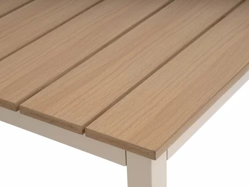 | Material | Ram: Aluminium, Bordsskiva: Konstträ (polystyren)Konstträ är ett underhållsfritt, syntetiskt material med naturlig trälook. Det är tillverkat av plast, såsom polystyren, som ger ett slitstarkt och väderbeständigt material. Konstträ är UV-skyddat, vilket säkerställer en färgbeständig yta. |