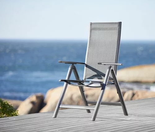 Aluminium och textilene. 6 positioner. Hopfällbar.