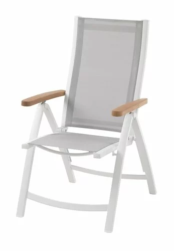 Aluminium, textilene och lackerat FSC® hårdträ. 5 positioner. Hopfällbar.