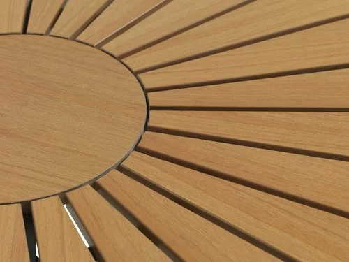 | Material | Ställning: Aluminium, Bordsskiva: Konstträ (polystyren)Konstträ är ett underhållsfritt, syntetiskt material med naturlig trälook. Det är tillverkat av plast, såsom polystyren, som ger ett slitstarkt och väderbeständigt material. Konstträ är UV-skyddat, vilket säkerställer en färgbeständig yta., Ben: Aluminium |