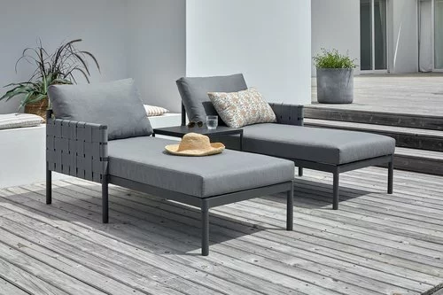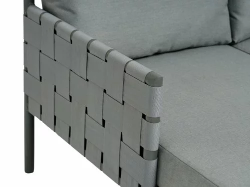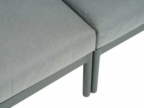 Aluminium och UV-skyddad polypropylen. Inkl. exklusiva dynor med slitstarkt, strukturvävt överdrag. B136 x L156 x H63 cm