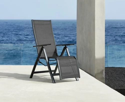 Aluminium och textilene. 6 positioner. Hopfällbar.