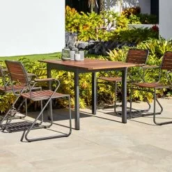 Bord: Aluminium och oljat FSC® hårdträ. Med 1 klaff. B70 x L75/126 x H75 cm. Stol: Aluminium och oljat FSC® hårdträ. Stapelbar.