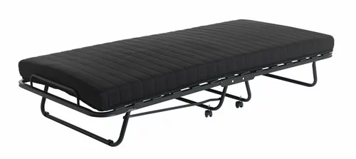 Stål. 11 cm tjock madrass med kärna av tryckavlastande memoryskum och polyeterskum. Med trälameller. Hopfällbar. B90 x L200 x H38 cm