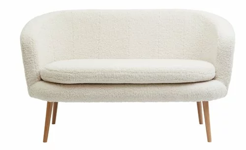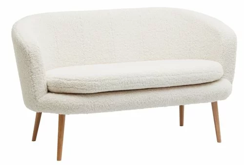 2-sits soffa med tygklädsel. Sittdyna och rygg i skum. Ben i massivt trä. B137 x H78 x D76 cm