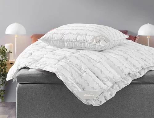 Kvalitetstäcke med unik dunliknande fyllning av silikoniserat fiberdun, 1250 g. De mjuka, lätta fiberdunen behåller sin volym och isoleringsförmåga. Mjukt överdrag i 100% bomullscambric. Tvätt 60°C. Inkl. förvaringsväska. 150×210 cm