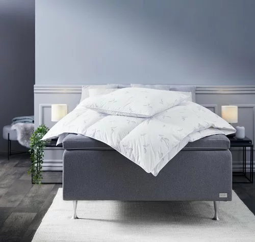 | Fyllning | Yttre kammare: 50% vita anddun/50% vita andfjädrar. Yttre kammare – vikt: 2×90 g. Inre kammare: 85% vita andfjädrar/15% vita anddun. Inre kammare – vikt: 1×580 g |