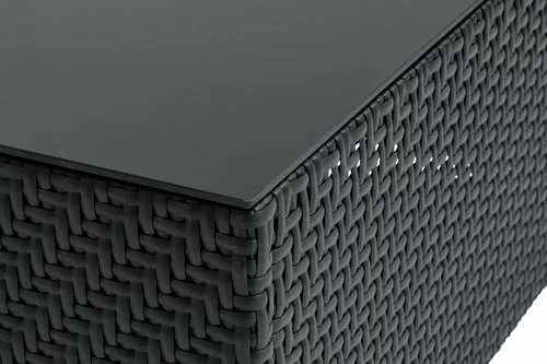 Loungeset med 7 moduler, som kan kombineras så de passar din uteplats. 1 bord: Stål och härdat glas. B60 x L68 x H32 cm. 4 mitt- och 2 hörn-/ändmoduler: Stål och konstrotting. Inkl. kvalitetsdynor med slitstarkt överdrag.