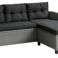 3-sits loungesoffa i stål och konstrotting. Kan spegelvändas. Inkl. exklusiva dynor med slitstarkt, strukturvävt överdrag. B170 x H76 x D67/142 cm