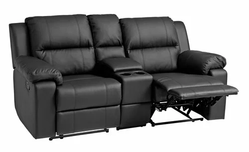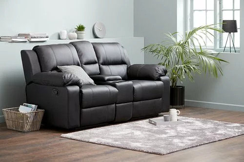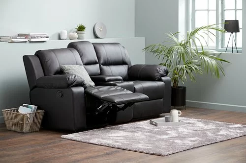 2-sits soffa med konstläderklädsel. Sittdynor med pocketfjädrar och skumstoppning. Ryggdynor i skum. Med steglös lutningsmekanism, inbyggda fotstöd och förvaringsutrymme. B196 x H96 x D98 cm