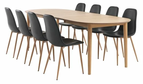 | Material | Topp: MDFMDF-skivor består av mycket tunt skurna, trycklimmade träfibrer., Metall, EkfanérTräfanér består av tunna skikt av massivt trä limmat på en spånskiva eller en MDF-skiva. Det ger ett autentisk intryck av massivt, naturligt trä., Massivt gummiträ, Ben: Massivt gummiträ, Ram: Massivt gummiträ, Yta: EkfanérTräfanér består av tunna skikt av massivt trä limmat på en spånskiva eller en MDF-skiva. Det ger ett autentisk intryck av massivt, naturligt trä. |