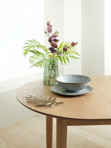 Massivt trä och ekfanér. Inkl. 2 klaffar som kan förvaras under bordsskivan. B90 x L190/270 x H75 cm