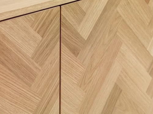 Massivt trä och ekfanér. B160 x H82 x D42 cm