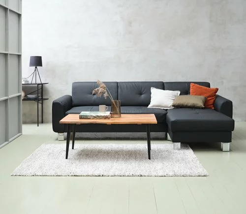 3-sits soffa med konstläderklädsel. Sittdynor med pocketfjädrar och skumstoppning. Ryggdynor i skum. Ben i krom. Kan spegelvändas. B260 x H80 x D87/150 cm