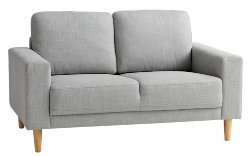 2-sits soffa med tygklädsel. Sitt- och ryggdynor i skum. Ben i massivt trä. B142 x H80 x D80 cm