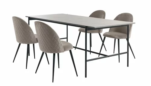 TERSLEV L200 Bord + 4 KOKKEDAL Stol Sammet Grå