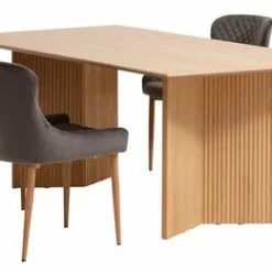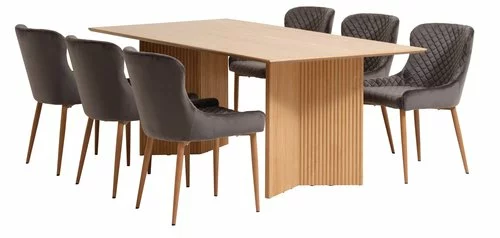 VESTERBORG L200 Bord Ek + 4 PEBRINGE Stol Grå Sammet